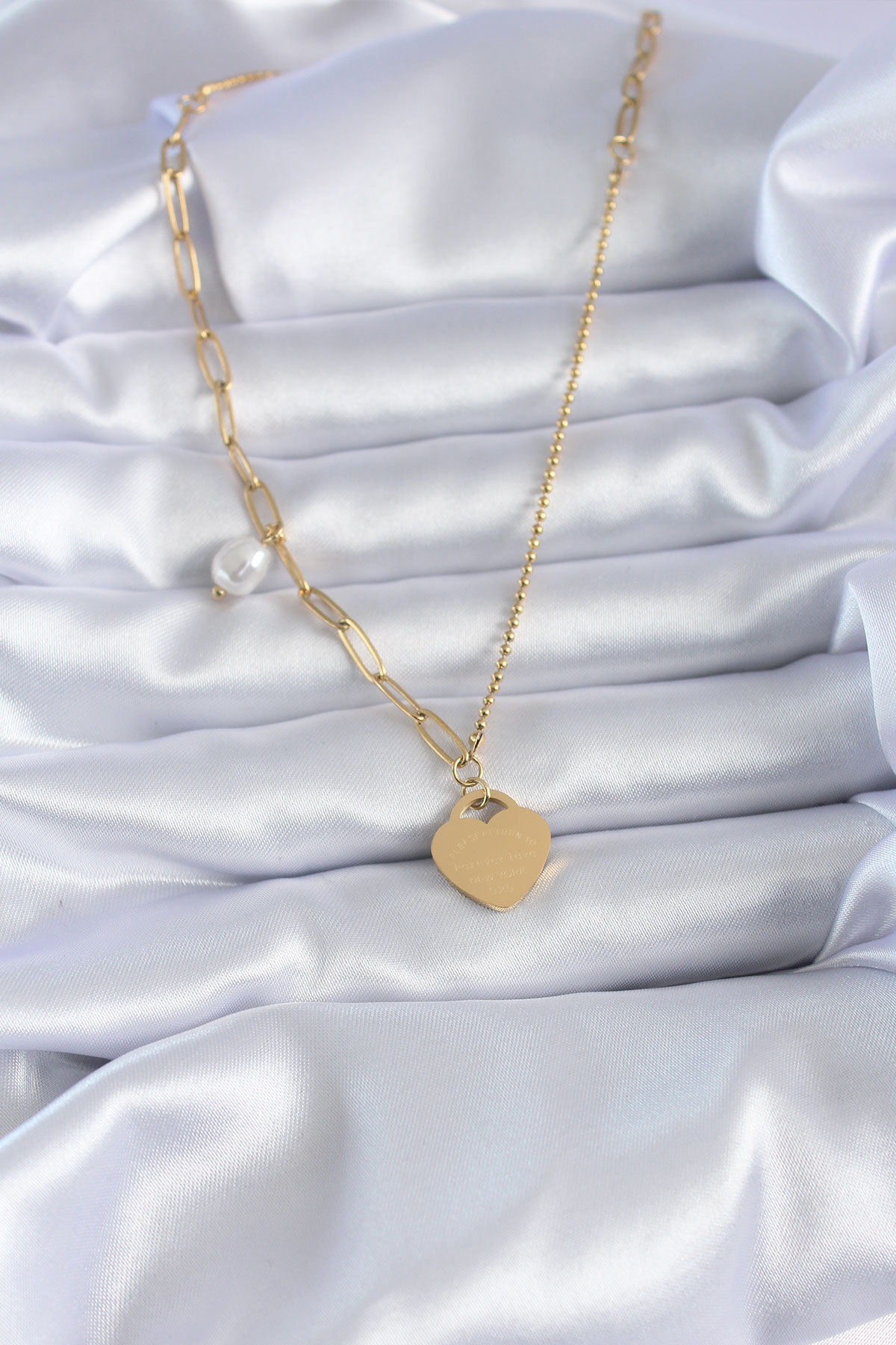 316L Çelik Gold Renk Kilit Kalp Figür İşleme Detay Zincir Model Kadın Kolye