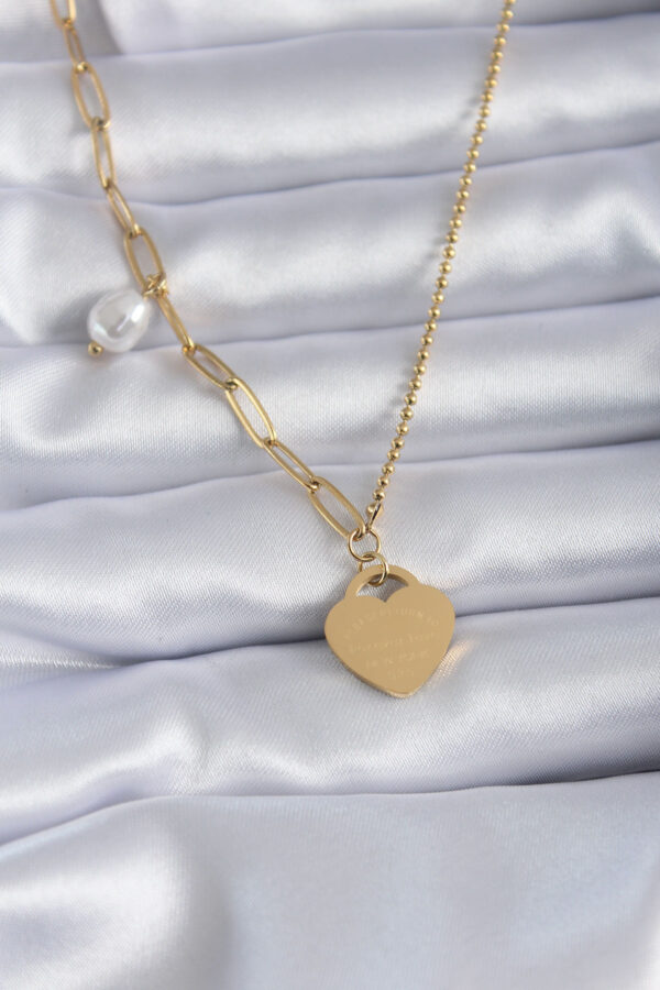 316L Çelik Gold Renk Kilit Kalp Figür İşleme Detay Zincir Model Kadın Kolye